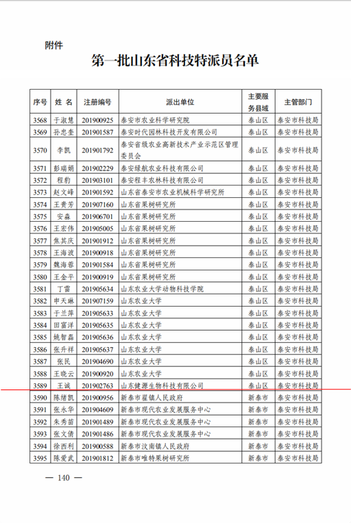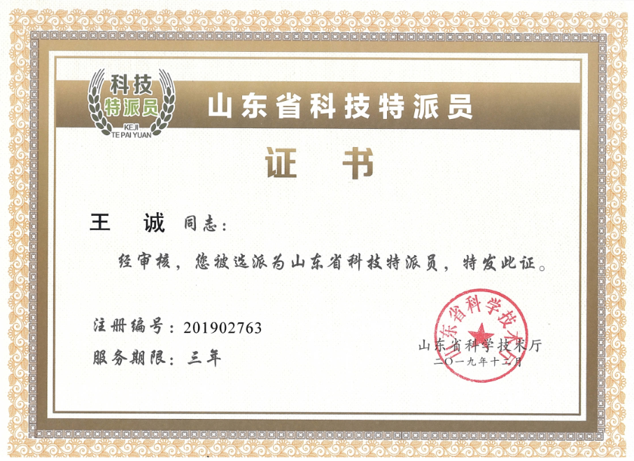 發(fā)布時(shí)間:[2020-6-22 14:58:2] 瀏覽量:3330次為深入貫徹習(xí)近平總書記對科技特派員制度推行20周年作出的重要指示精神,落實(shí)科技特派員制度推行20周年總結(jié)會議、全省科技特派員工作會議要求,按照《關(guān)于打贏脫貧攻堅(jiān)戰(zhàn)三年行動工作方案》、《關(guān)于深入推進(jìn)科技扶貧助力鄉(xiāng)村振興若干措施》和《關(guān)于組織開展科技特派員注冊工作的通知》部署安排,進(jìn)一步加強(qiáng)科技特派員選派工作,現(xiàn)名單予以公布,山東健源生物科技有限公司董事長王誠被選任為第一批山東省科技特派員。