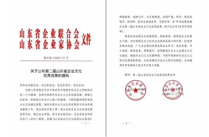 深入貫徹落實習(xí)近平新時代中國特色社會主義思想和黨的二十大精神,堅持中國特色社會主義文化發(fā)展道路,增強文化自信,積極踐行社會主義核心價值觀,不斷挖掘和培育我省企業(yè)文化建設(shè)典型,做好全國企業(yè)文化優(yōu)秀成果發(fā)布活動的遴選推薦工作。山東省企業(yè)聯(lián)合會、山東省企業(yè)家協(xié)會聯(lián)合開展了第二屆山東省企業(yè)文化優(yōu)秀成果發(fā)布活動。通過企業(yè)申報,各市企業(yè)聯(lián)合會、企業(yè)家協(xié)會和有關(guān)部門(單位)推薦,依據(jù)《山東省企業(yè)文化成果認(rèn)定規(guī)范》團體標(biāo)準(zhǔn),按照公開、公正的原則,堅持嚴(yán)謹(jǐn)、科學(xué)、規(guī)范的程序,經(jīng)初審、發(fā)布會現(xiàn)場發(fā)布、專家評審,有79項成果被確定為山東省企業(yè)文化優(yōu)秀成果,山東健源生物科技有限公司《“誠”辦良心企業(yè),企業(yè)文化推動科技創(chuàng)新》企業(yè)文化成果榮獲第二屆山東省企業(yè)文化優(yōu)秀成果二等獎。