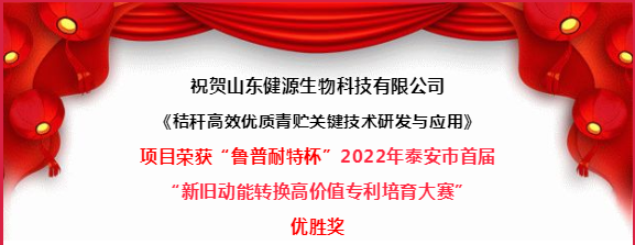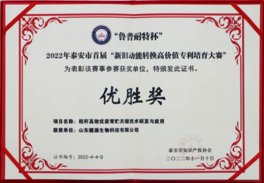祝賀山東健源生物榮獲2022年泰安市首屆“新舊動能轉(zhuǎn)換高價值專利培育大賽”優(yōu)勝獎
