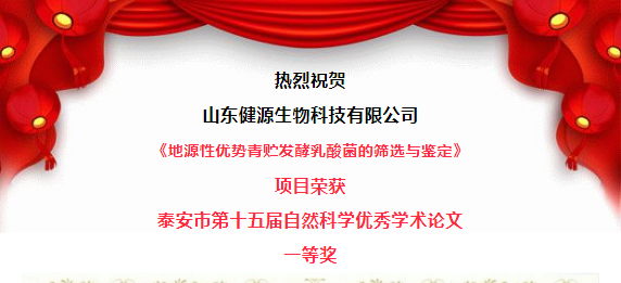 為深入推進泰安市“科創(chuàng)中國”試點市建設,培養(yǎng)人才,繁榮學術,鼓勵創(chuàng)新,提升泰安市廣大科技工作者的學術水平,根據泰安市人才工作計劃,由泰安市科協(xié)、泰安市科技局、泰安市人社局在全市組織開展了泰安市第十五屆自然科學優(yōu)秀學術論文評選活動。本次評選堅持公開、公平、公正的原則,采用異地評委評選的方式進行,共評出一等獎42項;二等獎70項;三等獎82項。山東健源生物科技有限公司《地源性優(yōu)勢青貯發(fā)酵乳酸菌的篩選與鑒定》項目榮獲泰安市第十五屆自然科學優(yōu)秀學術論文一等獎。