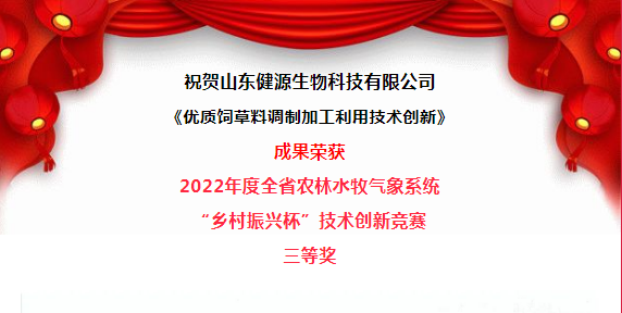 山東健源生物榮獲2022年度全省農林水牧氣象系統(tǒng)“鄉(xiāng)村振興杯”技術創(chuàng)新競賽三等獎