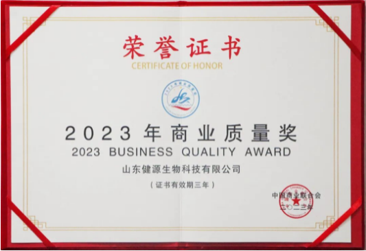山東健源生物榮獲“2023年商業(yè)質(zhì)量獎”