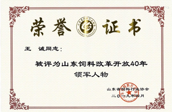 山東健源生物董事長(zhǎng)王誠榮獲山東飼料改革開放40年領(lǐng)軍人物