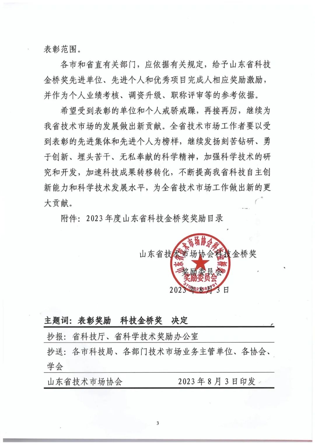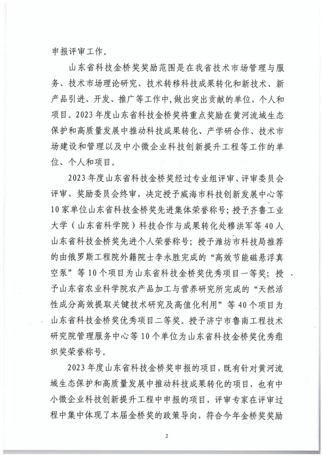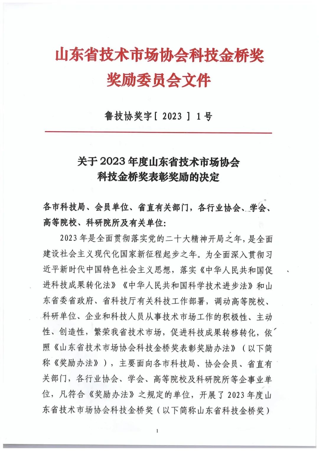 附:2023年度山東省技術(shù)市場(chǎng)協(xié)會(huì)科技金橋獎(jiǎng)獎(jiǎng)勵(lì)委員會(huì)文件及優(yōu)秀項(xiàng)目一等獎(jiǎng)名單