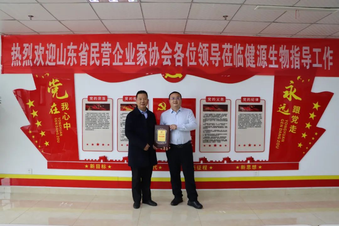 2024年1月17日,山東省民營(yíng)企業(yè)家協(xié)會(huì)秘書(shū)長(zhǎng)李吉祥,協(xié)會(huì)黨支部書(shū)記、副秘書(shū)長(zhǎng)孫力,協(xié)會(huì)秘書(shū)處主任彭亞玲,協(xié)會(huì)秘書(shū)處副主任柳川蒞臨公司調(diào)研工作,并為健源生物頒發(fā)獎(jiǎng)牌和證書(shū)。