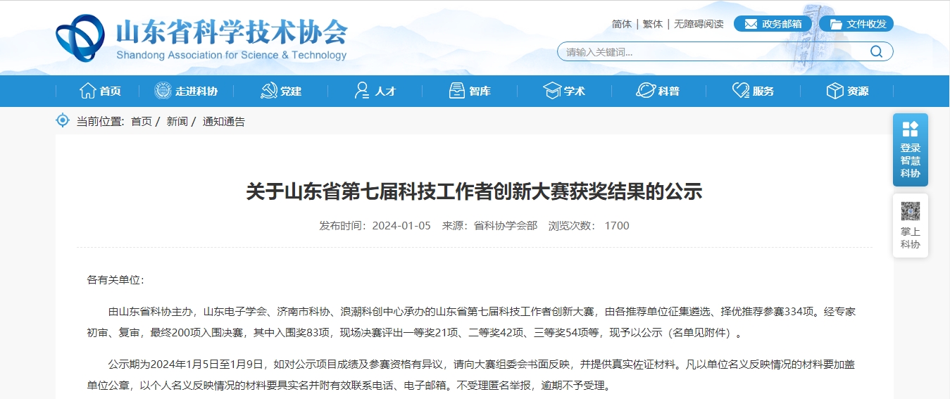 科協(xié)官網(wǎng)公示獲獎結(jié)果