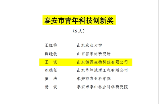2023年12月榮獲“泰安市青年科技創(chuàng)新獎(jiǎng)”
