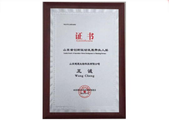 山東健源生物董事長(zhǎng)王誠(chéng)榮獲山東省創(chuàng)新驅(qū)動(dòng)發(fā)展帶頭人獎(jiǎng)