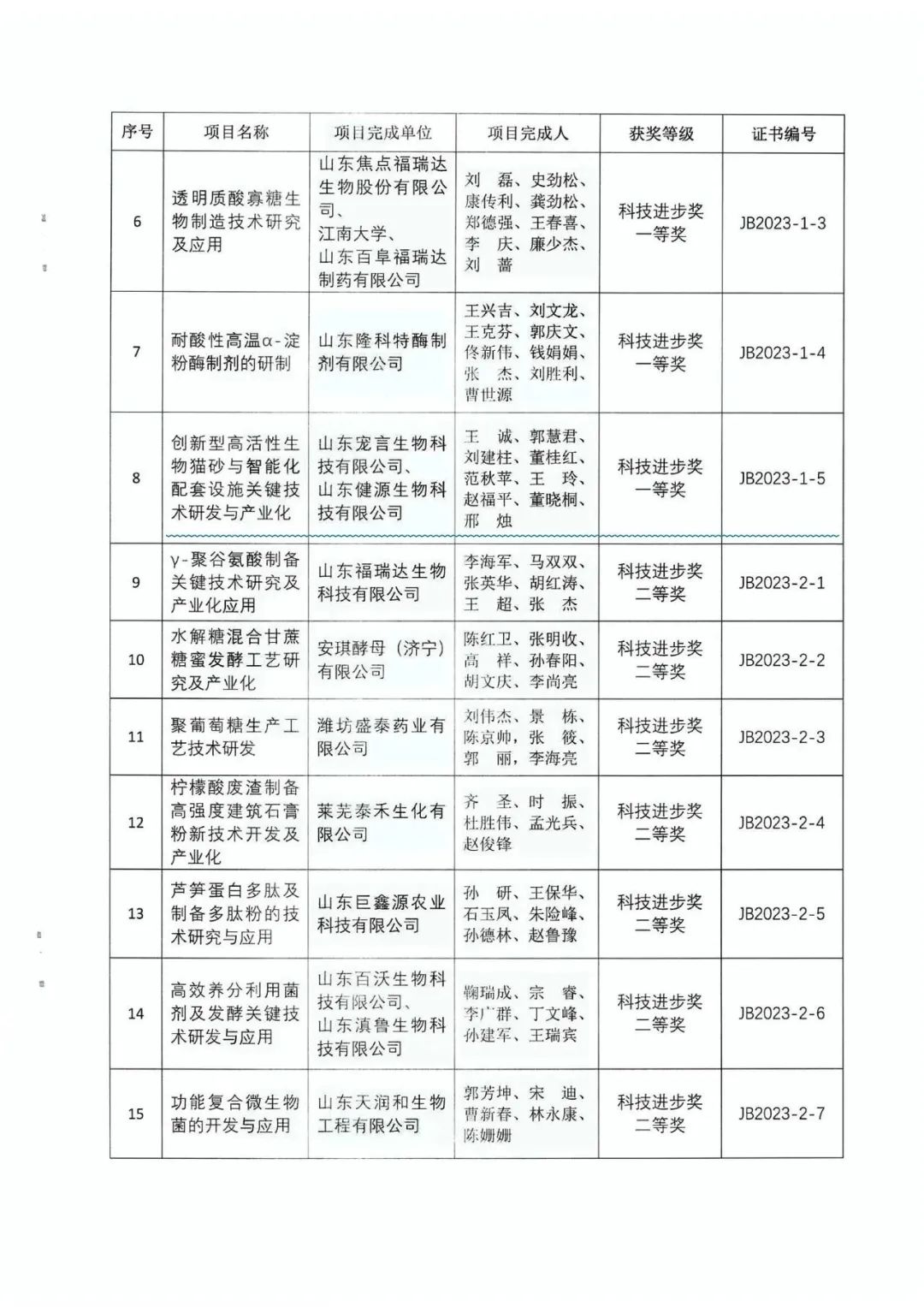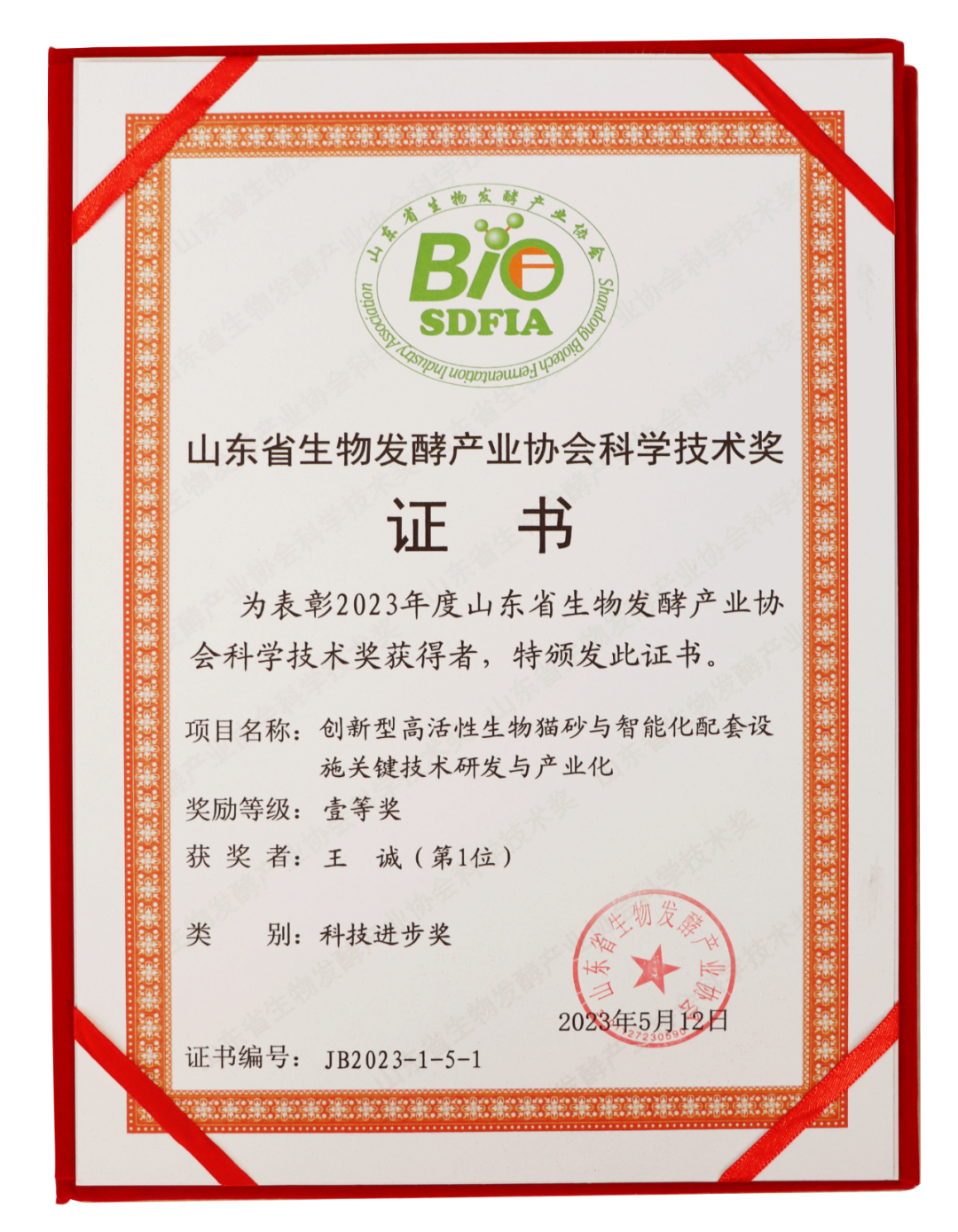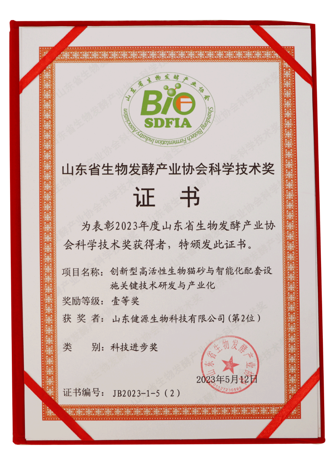 根據(jù)《國(guó)務(wù)院辦公廳關(guān)于完善科技成果評(píng)價(jià)機(jī)制的指導(dǎo)意見》(國(guó)辦發(fā)(2021)26號(hào))要求和《山東省科技廳關(guān)于進(jìn)一步鼓勵(lì)和規(guī)范山東省社會(huì)力量獎(jiǎng)設(shè)立科學(xué)技術(shù)獎(jiǎng)的指導(dǎo)意見》(魯科字[2018]129號(hào))精神,按照《山東省生物發(fā)酵產(chǎn)業(yè)協(xié)會(huì)科學(xué)技術(shù)獎(jiǎng)獎(jiǎng)勵(lì)章程》相關(guān)規(guī)定,山東省生物發(fā)酵產(chǎn)業(yè)協(xié)會(huì)開展了2023年度山東省生物發(fā)酵產(chǎn)業(yè)協(xié)會(huì)科學(xué)技術(shù)獎(jiǎng)的申報(bào)、評(píng)審工作,經(jīng)山東省生物發(fā)酵產(chǎn)業(yè)協(xié)會(huì)科學(xué)技術(shù)獎(jiǎng)勵(lì)委員會(huì)評(píng)審和審核,山東省生物發(fā)酵產(chǎn)業(yè)協(xié)會(huì)批準(zhǔn),授予1項(xiàng)成果為技術(shù)發(fā)明獎(jiǎng)特等獎(jiǎng),授予3項(xiàng)成果為科技進(jìn)步獎(jiǎng)特等獎(jiǎng),授予5項(xiàng)成果為科學(xué)技術(shù)獎(jiǎng)一等獎(jiǎng),授予7項(xiàng)成果為科學(xué)技術(shù)獎(jiǎng)二等級(jí)。此次授獎(jiǎng)項(xiàng)目共計(jì)16項(xiàng)。健源生物及其下屬子公司山東寵言生物科技有限公司《創(chuàng)新型高活性生物貓砂與智能化配套設(shè)施關(guān)鍵技術(shù)研發(fā)與產(chǎn)業(yè)化》項(xiàng)目榮獲山東省生物發(fā)酵產(chǎn)業(yè)協(xié)會(huì)科學(xué)技術(shù)獎(jiǎng)科技進(jìn)步獎(jiǎng)一等獎(jiǎng)。