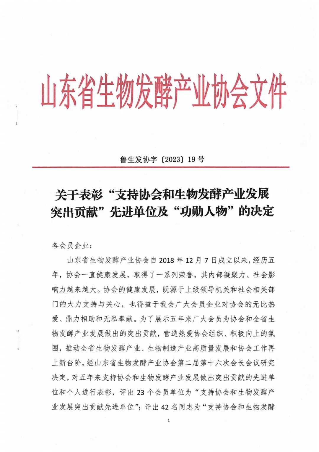 山東省生物發(fā)酵產(chǎn)業(yè)協(xié)會(huì)自2018年12月7日成立以來,經(jīng)歷五年,協(xié)會(huì)一直健康發(fā)展,取得了一系列榮譽(yù),其內(nèi)部凝聚力、社會(huì)影響力越來越大。協(xié)會(huì)的健康發(fā)展,既源于上級(jí)領(lǐng)導(dǎo)機(jī)關(guān)和社會(huì)相關(guān)部門的大力支持與關(guān)心,也得益于我會(huì)廣大會(huì)員企業(yè)對(duì)協(xié)會(huì)的無比熱愛、鼎力相助和無私奉獻(xiàn)。為了展示五年來廣大會(huì)員為協(xié)會(huì)和全省生物發(fā)酵產(chǎn)業(yè)發(fā)展做出的突出貢獻(xiàn),營(yíng)造熱愛協(xié)會(huì)組織、積極向上的氛圍,推動(dòng)全省生物發(fā)酵產(chǎn)業(yè)、生物制造產(chǎn)業(yè)高質(zhì)量發(fā)展和協(xié)會(huì)工作再上新臺(tái)階,經(jīng)山東省生物發(fā)酵產(chǎn)業(yè)協(xié)會(huì)第二屆第十六次會(huì)長(zhǎng)會(huì)議研究決定,對(duì)五年來支持協(xié)會(huì)和生物發(fā)酵產(chǎn)業(yè)發(fā)展做出突出貢獻(xiàn)的先進(jìn)單位和個(gè)人進(jìn)行表彰,共評(píng)出42名同志為“支持協(xié)會(huì)和生物發(fā)酵產(chǎn)業(yè)發(fā)展功勛人物”。山東健源生物科技有限公司董事長(zhǎng)王誠(chéng)被評(píng)為支持協(xié)會(huì)和生物發(fā)酵產(chǎn)業(yè)發(fā)展突出貢獻(xiàn)功勛人物。