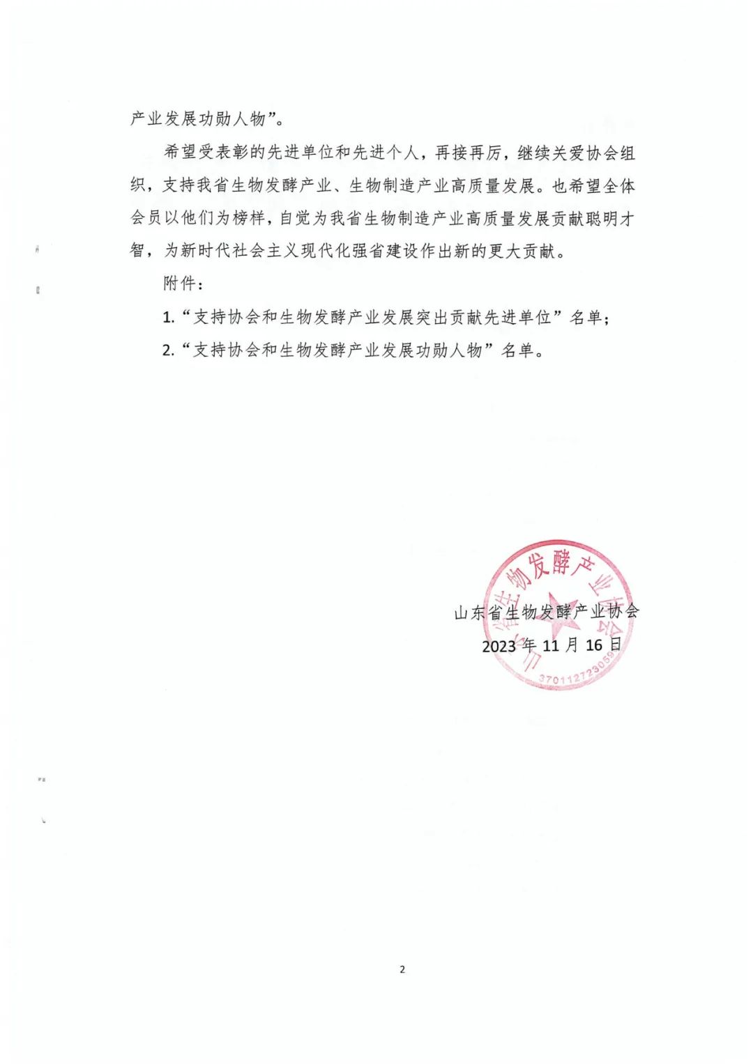 2023年12月7日,山東省生物發(fā)酵產(chǎn)業(yè)協(xié)會(huì)第三屆第一次會(huì)員大會(huì)暨2023年度表彰大會(huì)在濟(jì)南舉行,山東健源生物科技有限公司榮獲山東省生物發(fā)酵產(chǎn)業(yè)協(xié)會(huì)科學(xué)技術(shù)獎(jiǎng)科技進(jìn)步獎(jiǎng)一等獎(jiǎng)、董事長(zhǎng)王誠(chéng)被評(píng)為支持協(xié)會(huì)和生物發(fā)酵產(chǎn)業(yè)發(fā)展突出貢獻(xiàn)功勛人物。