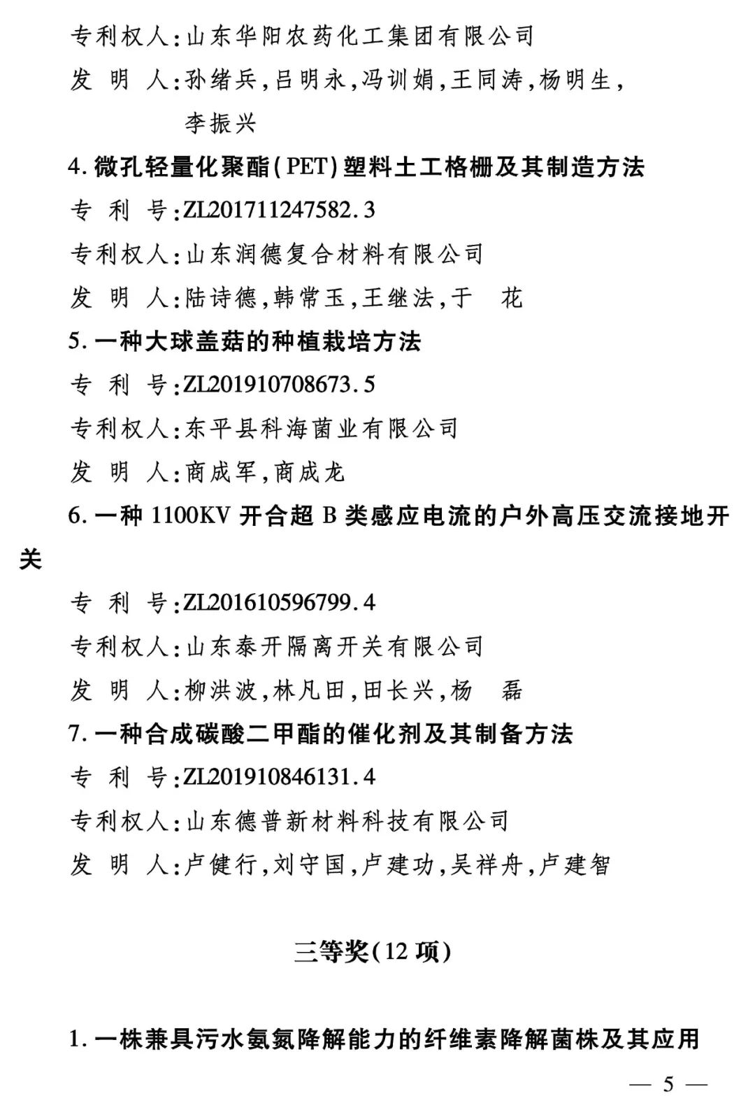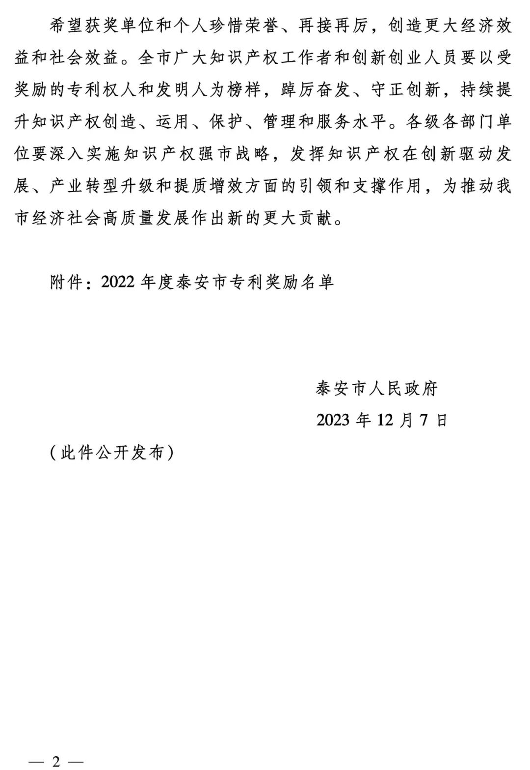 2022年度泰安市專利獎(jiǎng)