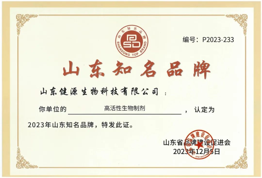 健源生物被認(rèn)定為2023年山東知名品牌