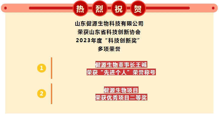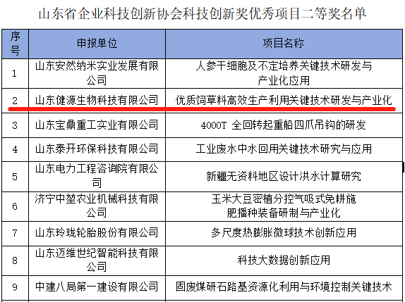 近日,山東省企業(yè)科技創(chuàng)新協(xié)會公布了《關(guān)于公示2023年度科技創(chuàng)新獎評審結(jié)果的決定》,山東健源生物科技有限公司董事長王誠被評為2023年度山東省科技創(chuàng)新獎先進個人,《優(yōu)質(zhì)飼草料高效生產(chǎn)利用關(guān)鍵技術(shù)研究與產(chǎn)業(yè)化》項目榮獲山東省科技創(chuàng)新獎優(yōu)秀項目二等獎。